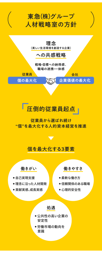 また、当社が手掛ける鉄道事業や不動産開発などは数年〜数十年単位の長期事業の場合、理念が共有されていないと同じ方向を向いて働くのが難しくなってしまいます。